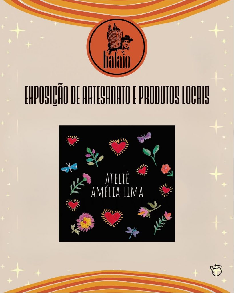 Mercado de Delicadezas apoio Sebrae – Exposição de artesãos e produtos locais: Ara Cerâmica Artesanal, FEArtResina, lara Faria Ateliê, Ateliê Amélia Lima, Marias Artesas, Candle, Bruma Chás e Infusões, Lumyê Ateliê, Préciosité Ateliê Infantil e Vivaldo Artesão – Local: Praça do Coreto